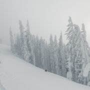 The flat and woodsy summit with spotty views was what I’d expected. I walked around the east, hoping to see across the valley but to no avail. Then I peeked through trees to, Frozen Mountain, Palmer Mountain, and Crosby Mountain,